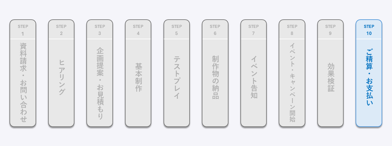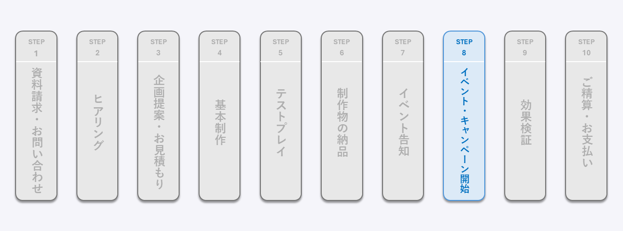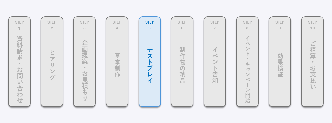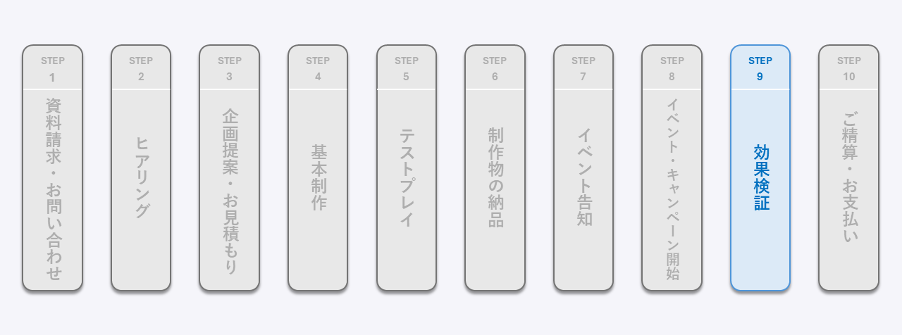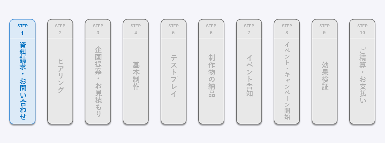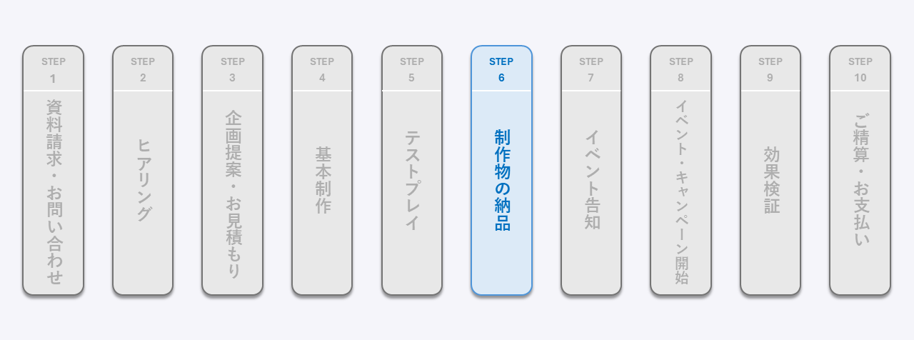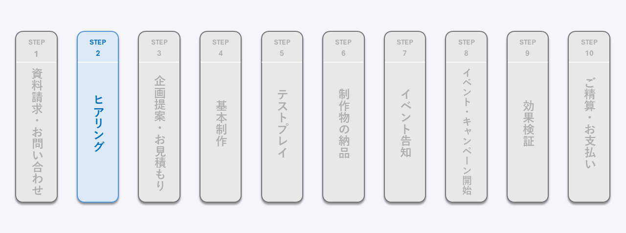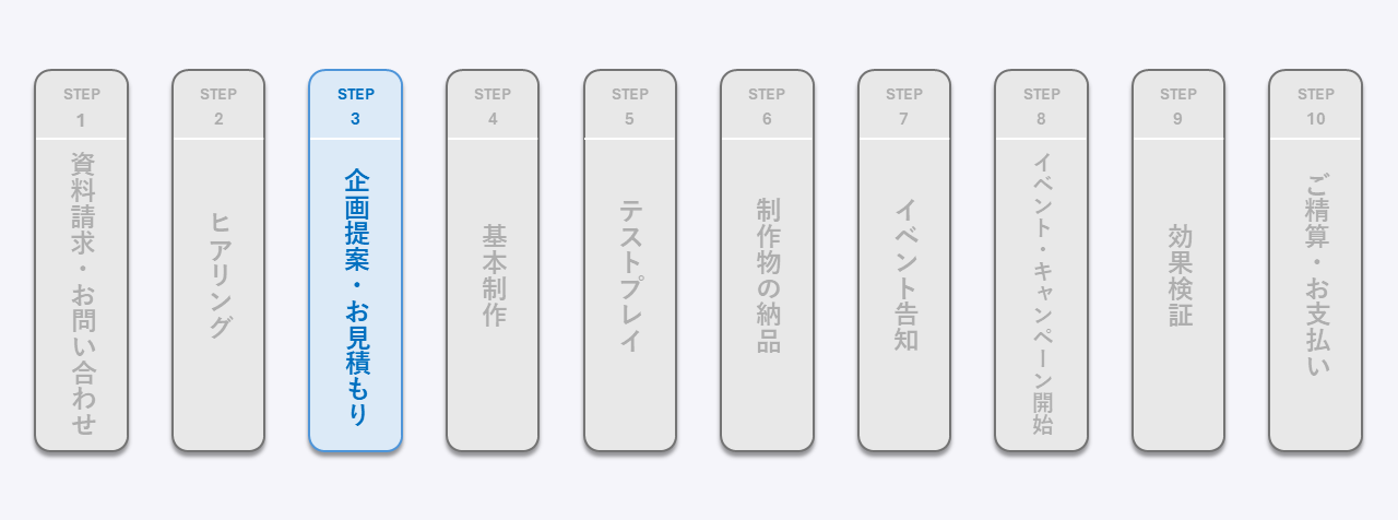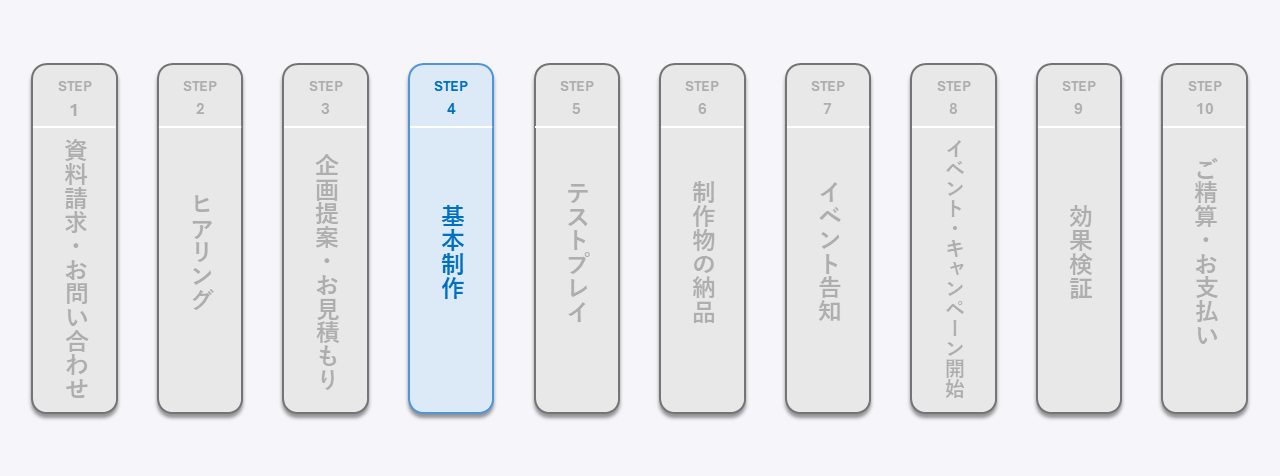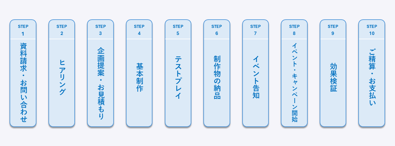 HP制作が「要件定義→基本設計→デザイン→開発→ テスト → 納品」といった流れをたどるように、謎解き制作もおおむね一定のフローに沿って進行します。